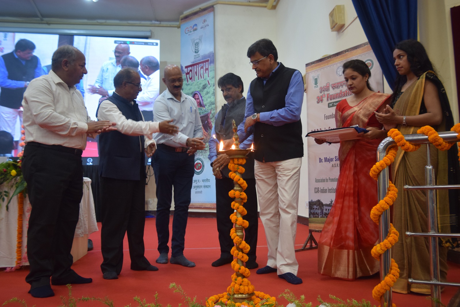 राजातालाब।भारतीय सब्जी अनुसंधान संस्थान शाहंशाहपुर में शनिवार को 34 वाँ स्थापना दिवस समारोह मनाया गया।जिसका उद्घाटन मुख्य अतिथि नई दिल्ली स्थित कृषि वैज्ञानिक चयन मंडल के सदस्य एवं प्रसिद्ध सब्जी वैज्ञानिक डॉ मेजर सिंह तथा विशिष्ट अतिथि डॉ ऊधम सिंह गौतम, उप महानिदेशक (प्रसार विज्ञान) आईसीएआर नई दिल्ली, डॉ एस वी एस राजू निदेशक कृषि विज्ञान संस्थान बी एच यू वाराणसी, डॉ पी के राय निदेशक सरसों अनुसंधान निदेशालय भरतपुर राजस्थान ने पौधारोपण एवं दीप प्रज्वलन कर किया।इसके उपरांत संस्थान के विभिन्न विभागों में नवीनीकृत प्रयोगशालाओं एवं समिति कक्ष का भी उद्घाटन किया गया।संस्थान के कार्यकारी निदेशक डॉ नागेंद्र राय ने सभी अतिथियों को अंग वस्त्र के साथ स्मृति चिन्ह देकर सम्मानित किया।उन्होंने अपने स्वागत संबोधन में संस्थान की उपलब्धियों पर प्रकाश डाला एवं आधुनिक सब्जी उत्पादन के माध्यम से किसानों के जीवन में खुशहाली लाने की दिशा में किए गए प्रयासों के बारे में जानकारी दिया। मुख्य अतिथि डॉ मेजर सिंह ने संस्थान में हो रही उत्तरोत्तर प्रगति पर हर्ष व्यक्त करते हुए कृषि वैज्ञानिक चयन मंडल की स्थापना, इसके इतिहास एवं हाल के दिनों में हुए भर्ती सुधार कार्यों का वर्णन किया।डॉ यू एस गौतम ने अध्यक्षीय संबोधन में कहा कि 2047 तक विकसित भारत का स्वप्न तभी साकार होगा जब किसान उद्यमी बन कर खेती करेगा। उन्होंने कृषि तकनीकी प्रसार एवं क्षमता संवर्धन की दिशा में भारतीय कृषि अनुसन्धान परिषद् द्वारा चलाये जा रहे आर्या, फार्मर्स फर्स्ट, नारी जैसी योजनाओं पर प्रकाश डाला। उन्होंने 10000 ऍफ़ पी ओ एवं 3000 स्वयं सहायता समूह से जुड़े किसानों एवं उद्यमियों को संस्थान द्वारा प्रशिक्षित करने हेतु प्रशिक्षण कार्यक्रमों के आयोजन का आह्वान भी किया। इस अवसर पर संस्थान के विभिन्न प्रकाशनों नामतः सब्जी किरण, वार्षिक प्रतिवेदन, सब्जी समाचार, तकनीक बुलेटिन,सब्जी शोध पत्रिका का विमोचन किया गया। वर्षोपरांत सर्वश्रेष्ठ कार्य के लिए वैज्ञानिक वर्ग में डॉ प्रभाकर मोहन सिंह एवं डॉ डी आर भारद्वाज , तकनीकी वर्ग में राम आसरे, प्रसाशनिक वर्ग में सुदीप सिंह, कुशल सहायक वर्ग में शिव कुमार एवं कृषि विज्ञान केंद्र (भदोही) में डॉ रेखा सिंह को प्रशस्ति पत्र दिया गया। कार्यक्रम का संचालन डॉ. डी आर भारद्वाज एवं धन्यवाद ज्ञापन डा. अरविंद नाथ सिंह ने किया।समारोह में संस्थान के सभी वैज्ञानिक, तकनीकी, प्रशासनिक अधिकारी, सहायक कर्मचारी एवं शोध छात्र उपस्थित रहे।