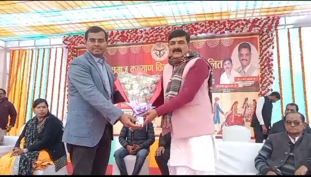 : सोनभद्र जनपद के विकास खंड चोपन में रेलवे फुटबॉल ग्राउंड में सामूहिक विवाह का आयोजन उत्तर प्रदेश के समाज कल्याण विभाग द्वारा सामूहिक विवाह का आयोजन किया गया। जिसमे चोपन और कोन ब्लॉक मिलाकर 74 सामूहिक जोड़ों ने शादी को लेकर रजिस्ट्रेशन कराया था। जिसमें से 63 जोड़ों ने विधिवत मंत्रोचार के साथ सामूहिक विवाह किया। इस दौरान महिलाओ के समूह द्वारा विवाह गीत भी जोड़ो के लिए गाया गया।