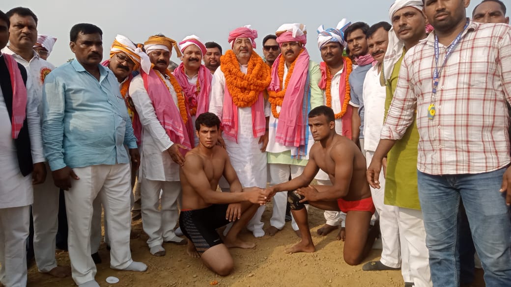 चौबेपुर, धौरहरा(सोनाली पटवा)। – प्राचीन कुश्ती दंगल समिति के तत्वावधान में 2 अक्टूबर, बुधवार को धौरहरा के शिव मंदिर राजधानी मोड़ में विशाल कुश्ती दंगल प्रतियोगिता का आयोजन किया गया। पितृ पक्ष के अवसर पर हुए इस कार्यक्रम में क्षेत्रीय नागरिकों और पहलवानों की बड़ी संख्या में उपस्थिति रही। कार्यक्रम का शुभारंभ समिति के अध्यक्ष शिवमोहन यादव और संयोजक क्षति यादव ने अखाड़ा पूजन कर अतिथियों का स्वागत करते हुए किया। मुख्य अतिथि चंदौली सांसद वीरेंद्र सिंह ने पहलवानों का हाथ मिलवाकर दंगल का उद्घाटन किया।