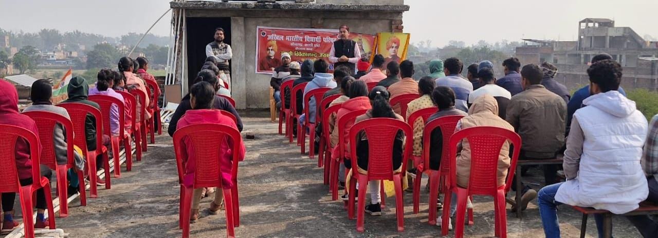 सोनभद्र: घोरावल में अखिल भारतीय विद्यार्थी परिषद नगर के द्वारा विधार्थी परिषद के आदर्श व देश के युवा शक्ति के प्रेरणा स्रोत पूज्य स्वामी विवेकानंद जी की जयंती के उपलक्ष्य में घोरावल नगर के अहिल्याबाई होल्कर कोचिंग सेंटर में संगोष्ठी का आयोजन किया गया। जिसमें मुख्य वक्ता अभाविप के पूर्व कार्यकर्ता माला चौबे ने युवा तरुणाई को संबोधित करते हुए कहा कि विवेकानंद जी के एक वक्तव्य से हम सबको प्रेरणा लेना चाहिए कि- उठो, जागो तब तक मत रुको जब तक लक्ष्य प्राप्ति ना हो जाए। वहीं तहसील प्रमुख मनोज सिंह ने भी युवा शक्ति को संबोधित किया, इस अवसर पर कार्यक्रम का संचालन तहसील संयोजक ललितेश मिश्र ने किया।इस अवसर पर कोचिंग प्रबंधक अनिल पाल व नगर मंत्री रणजीत सिंह पटेल ,सह मंत्री कुशाग्र दुबे व अविनाश दुबे आदि उपस्थित रहे।