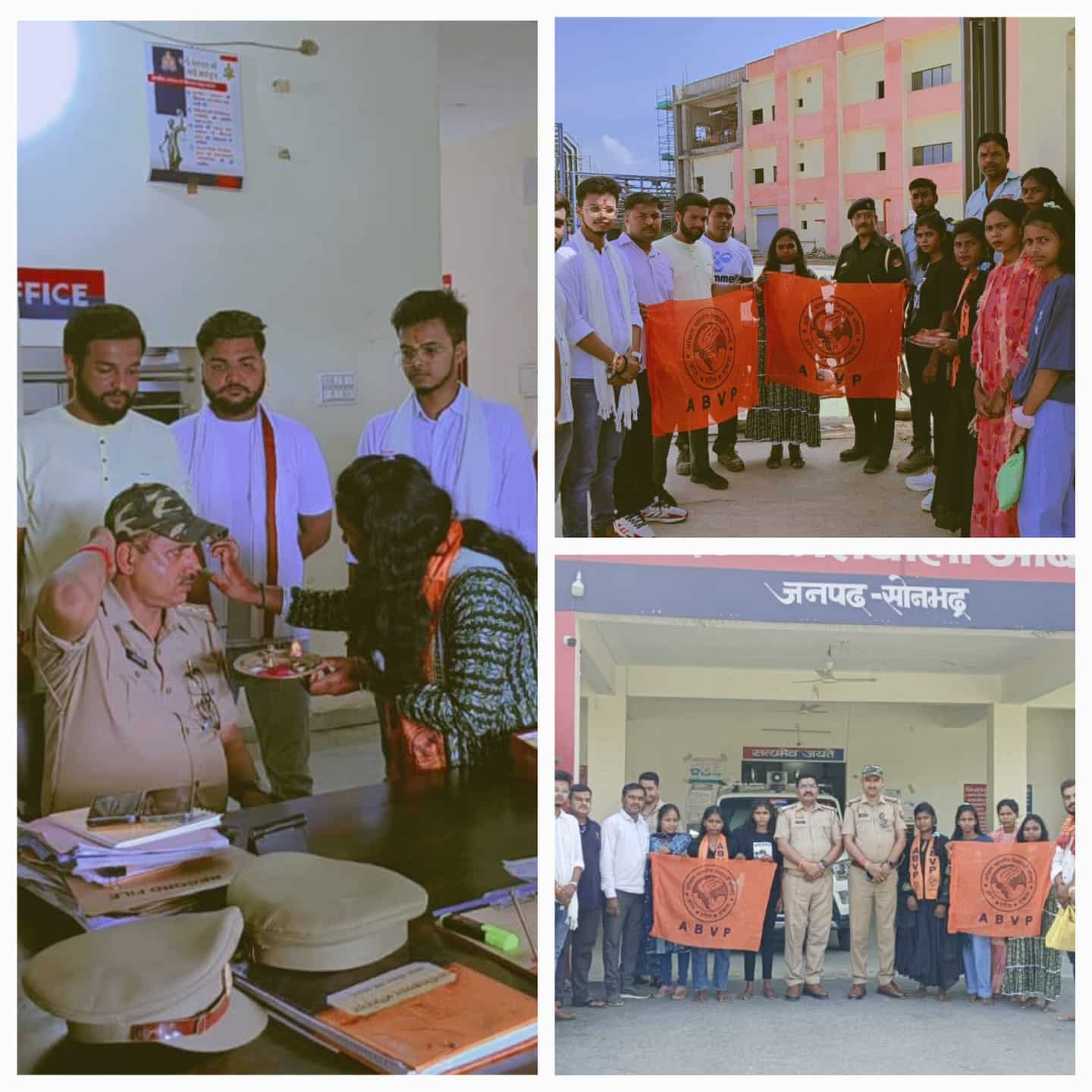 ओबरा / सोनभद्र – स्थानीय नगर में अखिल भारतीय विधार्थी परिषद सोनभद्र के ओबरा नगर इकाई की छात्रा कार्यकर्ता बहनो के द्वारा समाज मे हमारी सुरक्षा करने वालों सुरक्षा कर्मी पुलिस एवं भूत पूर्व सैनिक जो हमारी सुरक्षा मे अपने परिवार से दूर रह कर अपने कर्तव्य का निर्वहन कर रहे हैं उन सुरक्षा कर्मियों को रक्षा सूत्र बांध कर भाई-बहन के मृदुल स्नेह के प्रतीक ‘रक्षाबंधन’ के पावन पर्व को मनाया गया और बहनों की तरह लंबी उम्र की कामना की गई ।जिसमे प्रमुख रूप से सोनभद्र विभाग के विभाग सह संयोजक सौरभ सिंह (पंकज) नगर मंत्री ऋषभ राज, प्रीति, दिव्या,नेहा, सुमन, मधु, कृति पूर्व प्रदेश कर्यकार्णि सदस्य अनमोल सेठ, पूर्व तहसील संयोजक शिखर सोनी , अनिकेत सिंह , श्याम गिरी, इत्यादि कार्यकर्ता मौजूद रहे