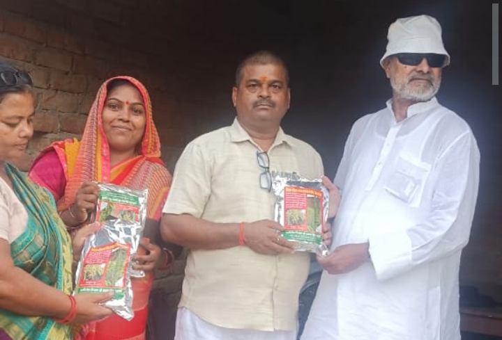 राजातालाब।आराजी लाइन ब्लॉक क्षेत्र टड़िया वाराणसी के प्रगतिशील किसान और कुदरत बीज के संस्थापक श्री प्रकाश सिंह रघुवंशी ने जौनपुर के बरसाती ब्लॉक क्षेत्र के धनीपुर गांव में किसानों को जैविक खेती और उन्नत बीज के प्रति जागरूक किया।कुदरत बीज के गुणों के बारे में बताते हुए किसानों को निःशुल्क 100 /100 ग्राम मुफ्त बीज वितरण कर बीज से बीज बनाने का तरीका बताया।ऐसे ही गांव सरोना जमालपुर ब्लॉक राम नगर जौनपुर में भी आयोजन किया गए उसने 500 किसानों को बीज दान रघुवंशी के द्वारा किया गया।प्रगतिशील किसान श्री प्रकाश सिंह रघुवंशी को अब तक 3 राष्ट्रपति तथा 4 मुख्यमंत्रियों द्वारा सम्मान एवं पुरस्कार प्राप्त हो चुका है।श्री प्रकाश सिंह रघुवंशी अपने सूझ बूझ से गेहूं के नई प्रजातियों का चयन किया है।जिसमें जवाहरलाल नेहरू कृषि विश्वविद्यालय जबलपुर मध्य प्रदेश और आचार्य नरेंद्र देव कृषि विश्वविद्यालय अयोध्या उत्तर प्रदेश और पीपीवीएआरए में गेहूं कुदरत 9 श्री प्रकाश सिंह रघुवंशी जी के नाम रजिस्टर्ड है गेहूं कुदरत 9 120 दिनों में फसल पककर तैयार हो जाती है इसके बाली की लंबाई 9 से 10 इंच तक होती है पैदावार 25 से 30 कुंतल प्रति एकड़ होती है।किसानों को मुफ्त में बीज का सैंपल बांटने का मुख्य उद्देश्य यह है कि किसान खुद परीक्षण करे और अगले वर्ष हेतु बीज बना लेंजब बाजार मुक्त खेती होगी तभी किसान खुशहाल होगा।इस अवसर पर संध्या सिंह ,राम कृष्ण शुक्ला, मीनू सिंह, भारती सरोज सहित क्षेत्रीय किसान मौजूद रहे।