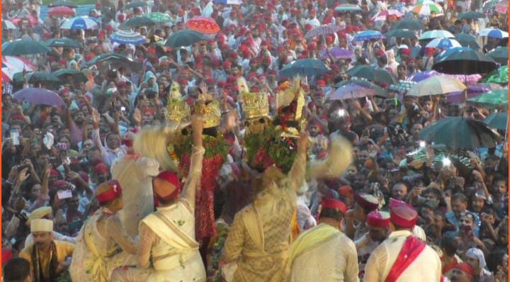 वाराणसी -लक्खा मेलों में शुमार नाटी इमली में भरत मिलाप हुआ। भाइयों राम-लक्ष्मण के स्वागत के लिए भरत और शत्रुघ्न जमीन पर लेट गए। दोनों छोटे भाइयों को देखकर राम और लक्ष्मण रथ से उतरकर दौड़ पड़े। राम और लक्ष्मण ने दोनों भाइयों को जमीन से उठाया। फिर राम ने भरत तो लक्ष्मण ने शत्रुघ्न को गले से लगा लिया। चारों भाइयों के मिलन के बाद मैदान जय श्रीराम के जयकारे से गूंज गया। यह पूरी लीला तेज बारिश के बीच हुई। लीला को देखने के लिए 20 हजार श्रद्धालु छाता लेकर मैदान में डटे रहे। वहीं महाराजा आनंत विभूति नारायण ने श्रीराम को चांदी की गिन्नी देकर आशीर्वाद लिया। कृष्ण कांत शास्त्री ने बताया कि इस बार बारिश के बीच में अद्भुत लीला हुई है। लीला हमने पहली बार देखी प्रभु राम के दर्शन के लिए हर कोई उत्साहित दिखा। काशी में भरत मिलाप कार्यक्रम का आयोजन लंबे समय से हो रहा है। अब यह कार्यक्रम देश ही नहीं, विश्व भर में प्रसिद्ध हो गया है। इस कार्यक्रम को देखने के लिए कई देशों से लोग यहां पहुंचे। यदुकुल के कंधे पर रघुकुल का रथ सवार होता है। आंखों में सुरमा लगाए धोती और बनियान और सर पर पगड़ी लगाए यादव बंधु मैदान में पहुंचे। श्रीराम का 5 टन का पुष्पक विमान को यादव बंधु लीला स्थल तक लाए। इस बार पूरे लीला क्षेत्र में गाड़ियों का आवागमन प्रतिबंधित कर दिया है। 3 ड्रोन के माध्यम से क्षेत्र की निगरानी भी की जा रही है।