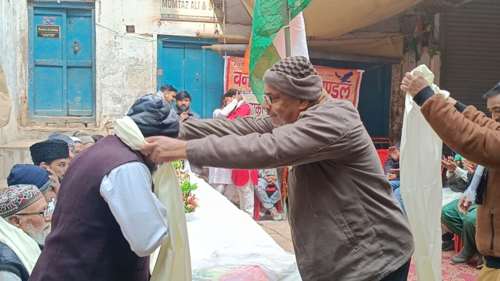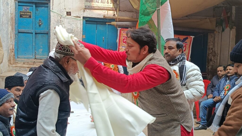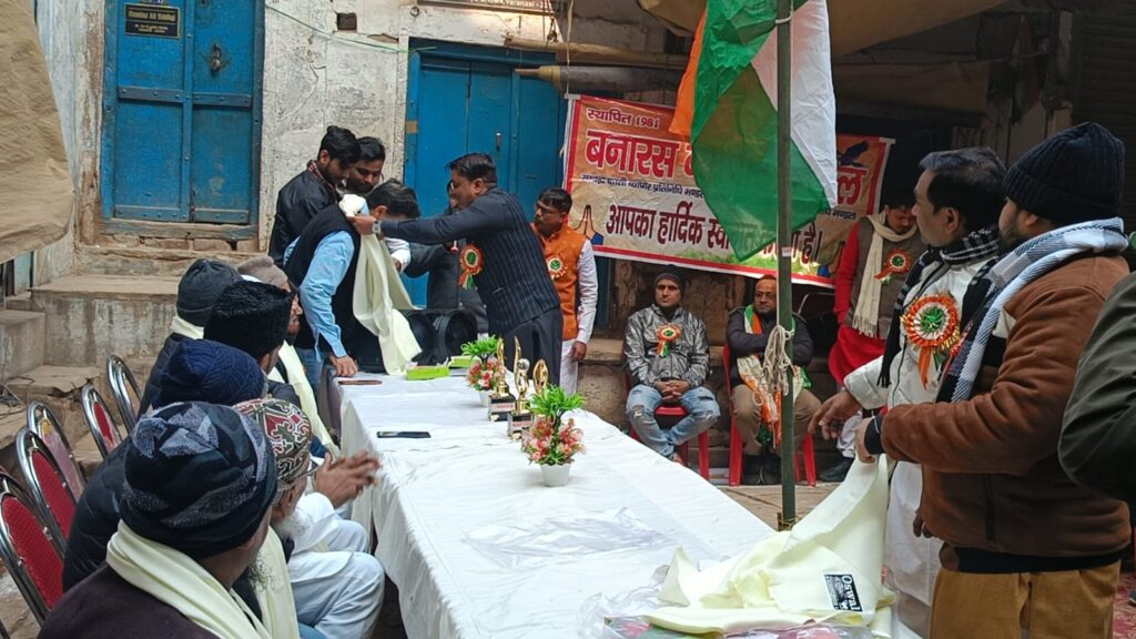 Varanasi: 26 जनवरी 75 वें गणतंत्र दिवस के अवसर पर बनारस व्यापार मंडल के ओर से झंडारोहण करके क्षेत्र के वरिष्ठ सम्मानित लोगो को शाल व मोमेंटो देकर सम्मानित किया गया एवम व्यापारियों को मिठाई भी बाटी गई।