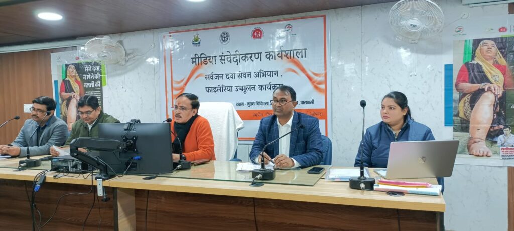 फाइलेरिया उन्मूलन को लेकर सीएमओ कार्यालय में आयोजित हुई मीडिया संवेदीकरण कार्यशाला आईडीए अभियान के माध्यम से जन-जन तक पहुंचाया जाए फाइलेरिया मुक्त भारत का संदेश चोलापुर व जैतपुरा क्षेत्र में 10 फरवरी से 28 फरवरी तक चलेगा सामूहिक दवा सेवन कार्यक्रम चोलापुर में 2.81 लाख और जैतपुरा क्षेत्र में 66,200 को खिलाई जाएगी फाइलेरिया रोधी ...