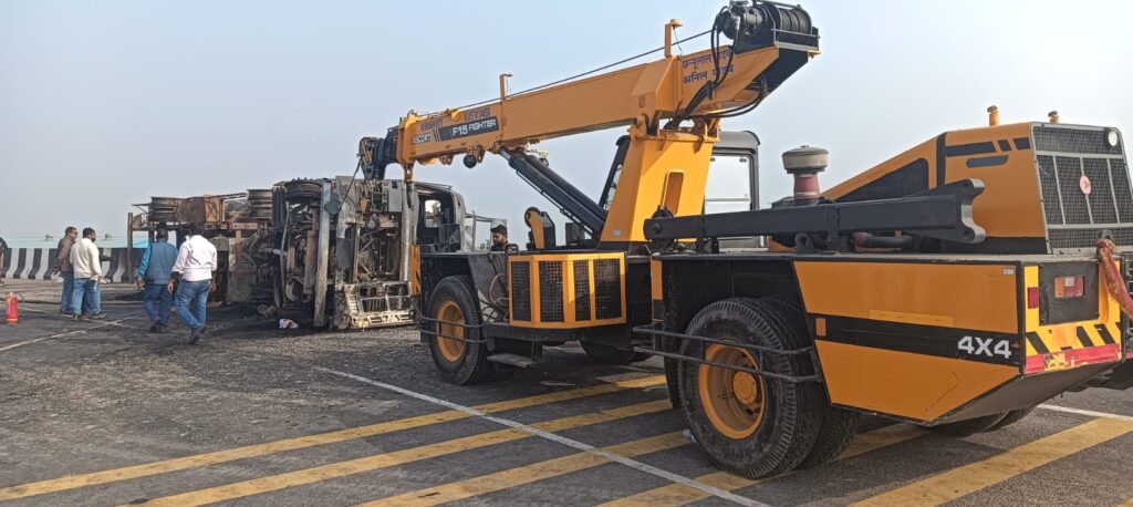 एलपीजी टैंकर आगजनी मामला:दूसरे दिन भी पूरी तरह बंद रही रिंग रोड जले टैंकर को हटाने में जुटे रहे दमकल व क्रेन के कमर्चारी