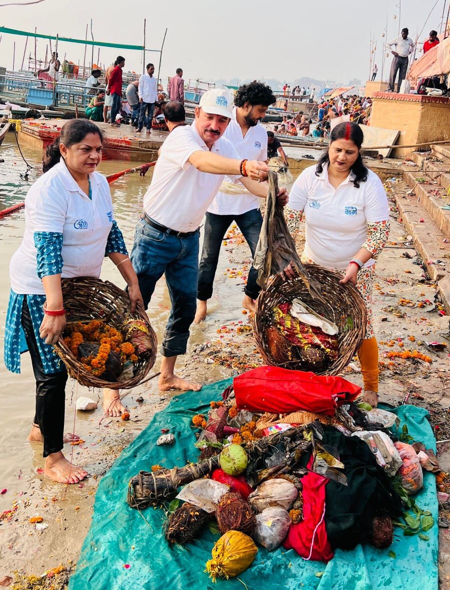 गुरुवार को शरद पूर्णिमा पर हर-हर गंगे की गूंज के बीच नमामि गंगे ने दशाश्वमेध घाट पर स्वच्छता अभियान चलाया । जन-जन को स्वच्छता से जुड़ने की अपील करके नमामि गंगे ने मां गंगा की आरती उतारी । पॉलिथीन कचरा तथा गंगा में श्रद्धालुओं द्वारा विसर्जित की गई पूजा सामग्री के अवशेषों को गंगा के जल से बाहर निकाला गया। गंगा को स्वच्छ रखने के लिए लाउडस्पीकर से श्रद्धालुओं को जागरूक किया गया। नमामि गंगे की टीम को देख वहां पहुंचे श्रद्धालुओं ने भी टीम का साथ दिया। उन्होंने मां गंगा की आरती उतारकर स्वच्छता का संकल्प लिया। नमामि गंगे काशी क्षेत्र के संयोजक व नगर निगम ब्रांड एंबेसडर राजेश शुक्ला ने बताया कि हमारे सभी धार्मिक ग्रंथो एवं शास्त्रों ने पर्यावरण के संरक्षण का संदेश दिया है। वेदों और पुराणों में वर्णन मिलता है मनुष्य को अपने किसी भी कृत्य से पर्यावरण को नुकसान नहीं पहुंचाना चाहिए। आयोजन में विशेष रूप से उपस्थित राष्ट्रीय स्वच्छ गंगा मिशन नई दिल्ली के प्रतिनिधि अथर्वराज पाण्डेय ने गंगा सफाई के लिए एकजुट होकर जन भागीदारी सुनिश्चित करने का आवाह्न किया । आयोजन के दौरान नमामि गंगे काशी क्षेत्र के संयोजक व नगर निगम ब्रांड एंबेसडर राजेश शुक्ला, राष्ट्रीय स्वच्छ गंगा मिशन के प्रतिनिधि अथर्वराज पाण्डेय, महानगर सहसंयोजक सरिका गुप्ता महानगर प्रभारी पुष्पलता वर्मा, रजनीश यादव उपस्थित रहे ।