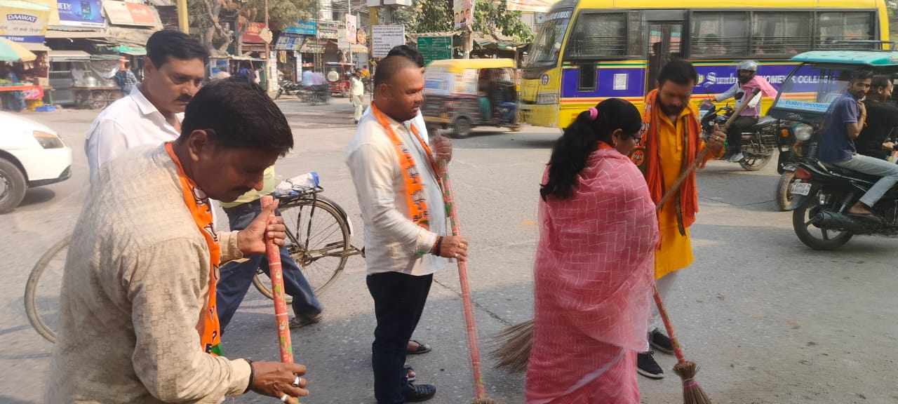 पार्षद संजू सरोज के नेतृत्व में दुर्गा मंदिर बौलिया तिराहा पर स्वच्छता अभियान संपन्न