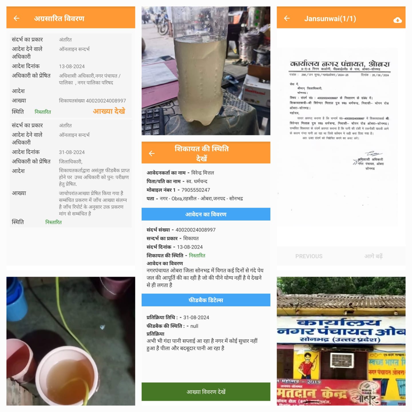 ओबरा नगर पंचायत के ऊपर गंदा पानी सप्लाई करने और मनमानी का आरोप, दोषी के खिलाफ कार्यवाही करने की मांग।