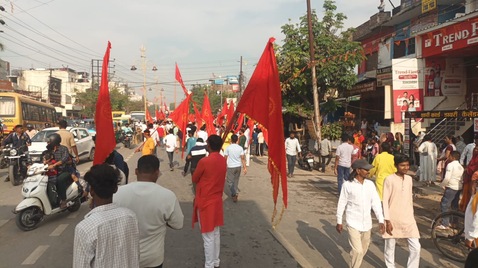 धार्मिक परंपरा के अनुसार यह ध्वज संकटमोचन हनुमान मंदिर में अर्पित किया जाएगा। यात्रा के दौरान भजन-कीर्तन और धार्मिक नारों से वातावरण भक्तिमय हो गया। आयोजकों ने बताया कि यह ध्वजा यात्रा आस्था और परंपरा का प्रतीक है, जिसमें हर वर्ष बड़ी संख्या में श्रद्धालु शामिल होते हैं।