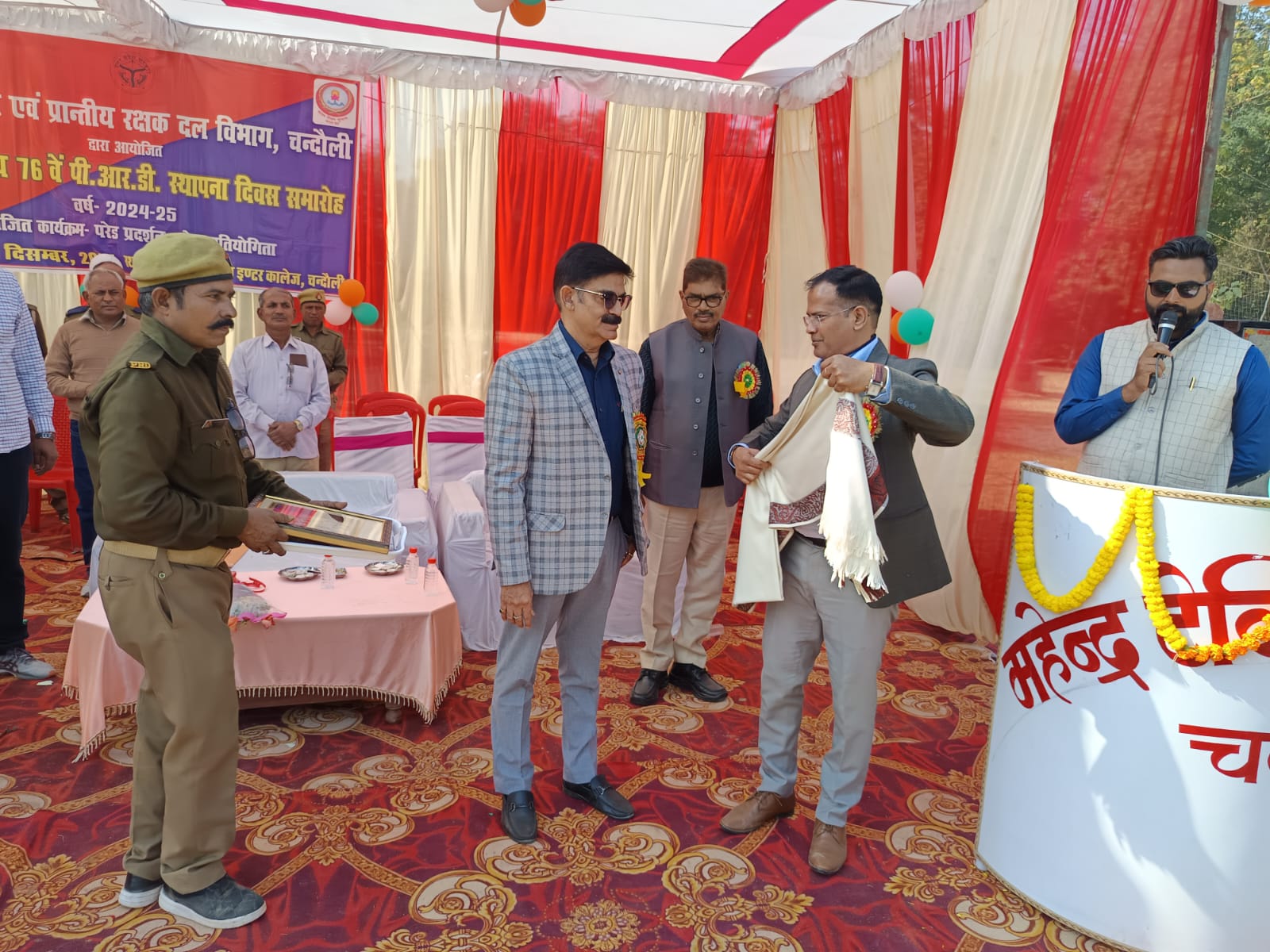 चन्दौली, 11 दिसंबर 2024: चन्दौली युवा कल्याण एवं प्रान्तीय रक्षक दल विभाग के तत्वाधान में प्रान्तीय रक्षक दल (पीआरडी) का 76वां स्थापना दिवस समारोह महेन्द्र टेक्निकल इण्टर कॉलेज, चन्दौली में धूमधाम से मनाया गया। इस अवसर पर परेड का आयोजन किया गया, जिसमें विभिन्न विकास खण्डों की टोलियों ने शानदार प्रदर्शन किया। मुख्य अतिथि श्री सुरेन्द्र नाथ श्रीवास्तव, मुख्य विकास अधिकारी, चन्दौली रहे, जिन्होंने परेड का मानप्रणाम स्वीकार किया और इस अवसर पर सम्बोधन भी दिया।
