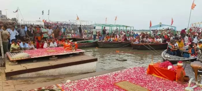 दशाश्वमेध घाट पर आरती स्थल तक पहुंचा गंगा का पानी, बदला आरती का स्थान