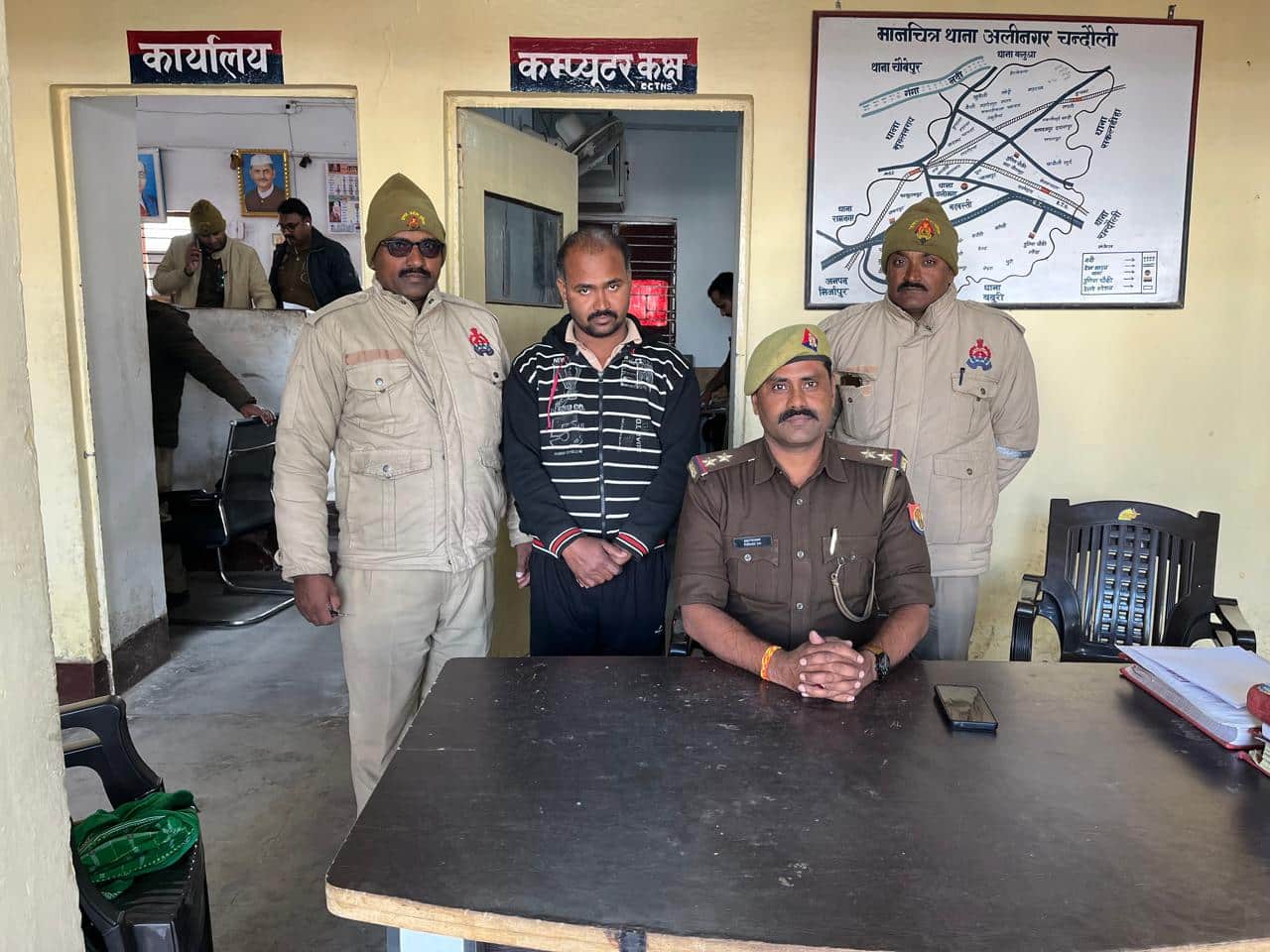 पुलिस अधीक्षक चन्दौली डा. आदित्य लांग्हे द्वारा जनपद में अपराध पर प्रभावी अंकुश लगाने हेतु पंजीकृत अभियोगों में वांछित व पुरस्कार घोषित अपराधियों की गिरफ्तारी हेतु दिये गये निर्देशों के अनुपालनार्थ चलाये जा रहे अभियान के क्रम में अपर पुलिस अधीक्षक सदर चन्दौली विनय कुमार सिंह व क्षेत्राधिकारी पं0 दीन दयाल उपाध्याय नगर आशुतोष के पर्यवेक्षण में प्रभारी निरीक्षक अलीनगर विनोद कुमार मिश्रा की टीम द्वारा थाना अलीनगर पर पंजीकृत मु.अ.सँ. 247/24 धारा 3(1) उ.प्र.गिरोहबन्द एवं समाज विरोधी क्रियाकलाप निवारण अधिनियम थाना अलीनगर जनपद चन्दौली से सम्बन्धित गिरोह के वांछित सक्रिय सदस्य एवं 10 हजार के ईनामियाँ अभियुक्त साहब कुमार पुत्र स्व0 रामजी निवासी ग्राम बिसौरी थाना व जिला चन्दौली को उसके घर से आज दिनांक 19.01.2025 को समय करीब 10.00 बजे ग्राम बिसौरी से गिरफ्तार किया गया है । अभियुक्त साहब कुमार उपरोक्त की गिरफ्तारी हेतु श्रीमान् पुलिस अधीक्षक महोदय जनपद चन्दौली द्वारा 10 हजार रूपये के नगद पुरस्कार की घोषणा पूर्व में की गयी थी। गिरफ्तार अभियुक्त के विरूद्ध आवश्यक वैधानिक कार्यवाही की जा रही है ।