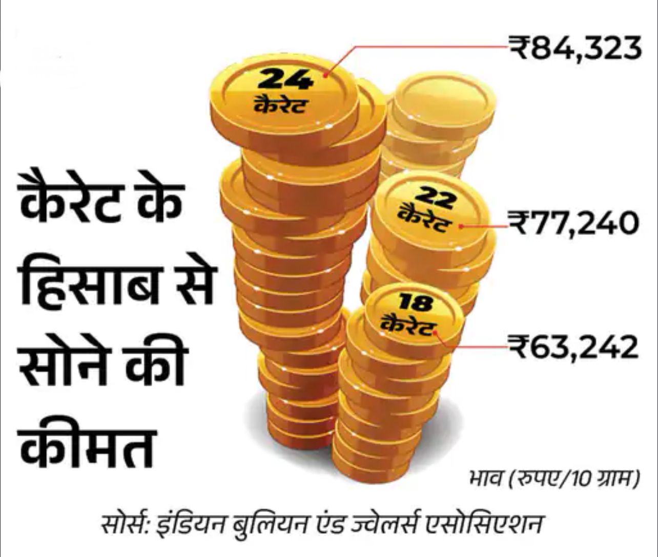 सोना आज यानी 5 फरवरी को लगातार तीसरे दिन ऑल टाइम हाई पर पहुंच गया। इंडिया बुलियन एंड ज्वेलर्स एसोसिएशन (IBJA) के अनुसार 10 ग्राम 24 कैरेट सोने का दाम 1,313 रुपए बढ़कर 84,323 रुपए पर पहुंच गया है। इससे पहले कल यानी 4 फरवरी को सोना 83,010 रुपए प्रति दस ग्राम के ऑलटाइम हाई पर था।