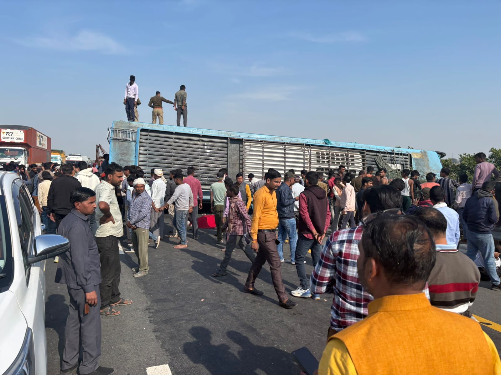 कन्नौज के सकरावा थाना क्षेत्र में शुक्रवार दोपहर एक बड़ा सड़क हादसा हुआ। लखनऊ से दिल्ली जा रही सवारियों से भरी स्लीपर बस की टक्कर एक टैंकर से हो गई। टक्कर इतनी भीषण थी कि दोनों वाहन डिवाइडर से टकराकर पलट गए। इस हादसे में 3 लोगों की मौत हो गई, जबकि करीब 40 लोग घायल हुए हैं।