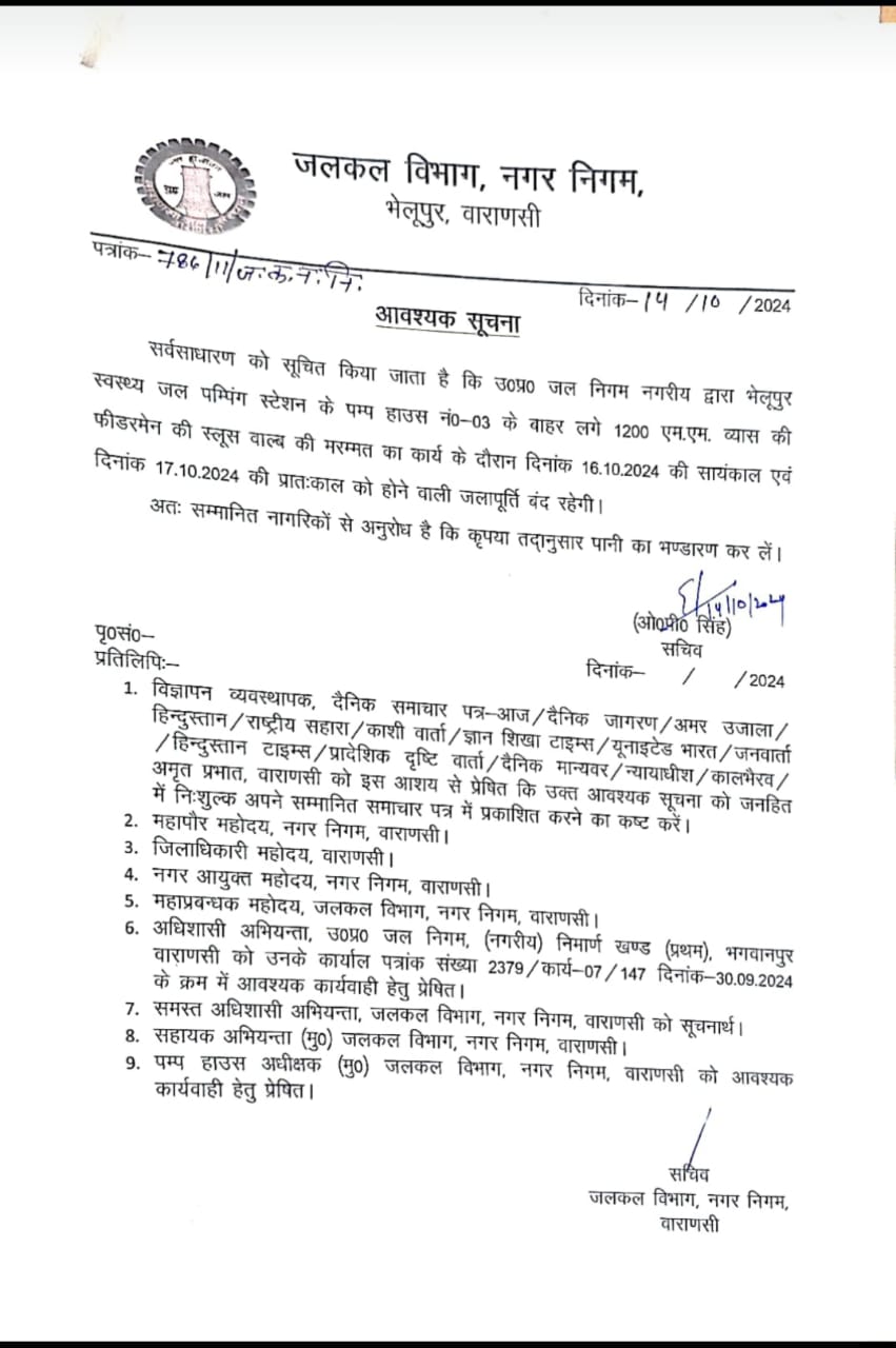 इसलिए, सभी नगरवासियों से अनुरोध है कि वे अपनी आवश्यकताओं के अनुसार पानी का संग्रहण पहले से कर लें, ताकि पानी की अनुपलब्धता के दौरान कोई समस्या न हो।