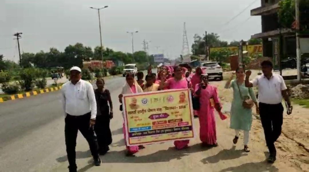 सोनभद्र- जिलाधिकारी महोदय एवं मुख्य विकास अधिकारी महोदय के पहल के पश्चात जिला कार्यक्रम अधिकारी विनीत सिंह के निर्देशन में विकास खंड रॉबर्ट्सगंज में आज खंड विकाश अधिकारी नितिन कुमार एवं बाल विकास परियोजना अधिकारी सुभास मौर्य के अध्यक्षता में पोषण रैली का आयोजन किया गया। बैठक के दौरान ब्लॉक सभागार में सभी आंगनवाड़ी कार्यकत्रियों को खंड विकास अधिकारी द्वारा सम्बोधित करते हुए बताया गया की कुपोषण मुक्त समाज बनाने के लिए पोषण से युक्त खाद्य सामग्री के माध्यम से सभी जन समुदाय सहित सभी लाभार्थियों को पोषण युक्त खान पान से होने वाले लाभ के बारे में संपूर्ण जानकारी प्रदान करते हुए जन जन की भागीदारी सुनिश्चित की जाय ।