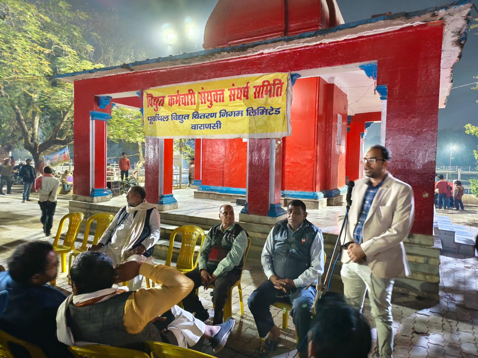 *वाराणसी-7दिसम्बर* ।    विद्युत कर्मचारी संयुक्त संघर्ष समिति, उत्तर प्रदेश के बैनर तले आज प्रदेश के सभी जनपद परियोजना मुख्यालयों और राजधानी लखनऊ सहित वाराणसी के बिजली कर्मचारियों ने निजीकरण के विरोध में कार्यालय समय के उपरांत शांतिपूर्ण तरीके से जनचेतना  विरोध प्रदर्शन भिखारीपुर स्थित हनुमानजी मंदिर पर किया। वाराणसी के बिजली कर्मी व अभियंता बड़ी संख्या में सम्मिलित हुए और सभा को संघर्ष समिति के प्रमुख पदाधिकारियो ने संबोधित किया।