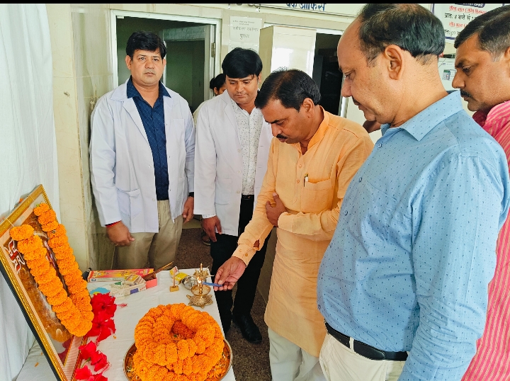 राजातालाब।आयुर्वेद दिवस के अवसर पर भदरासी स्थित 50 शैय्या एकीकृत आयुष चिकित्सालय पर मंगलवार को ब्लॉक प्रमुख प्रतिनिधि डॉक्टर महेंद्र सिंह पटेल तथा चिकित्सा अधीक्षक डॉक्टर नरेंद्र सिंह ने भगवान धन्वंतरि जी के चित्र पर माल्यार्पण कर उनका जयंती मनाया।ब्लॉक प्रमुख प्रतिनिधि डॉक्टर महेंद्र सिंह पटेल ने आयुर्वेद की महत्ता, दिनचर्या , ऋतुचर्या, आचार रसायन की विशेषताओं पर प्रकाश डालते हुए भगवान धनवंतरि जी के बारे में विस्तृत जानकारी दी।इस अवसर पर मुख्य रूप से संजीव कुमार सिंह पुर्व क्षेत्र पंचायत सदस्य सहित चिकित्सालय के समस्त अधिकारी एवं कर्मचारी उपस्थित रहे l