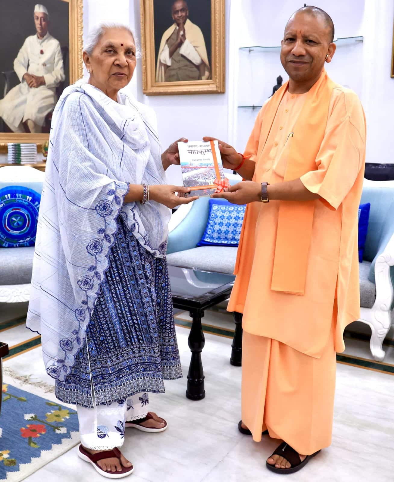 लखनऊ में उत्तर प्रदेश के मुख्यमंत्री योगी आदित्यनाथ ने राजभवन में राज्यपाल आनंदीबेन पटेल से शिष्टाचार मुलाकात की। इस औपचारिक भेंट के दौरान मुख्यमंत्री ने राज्यपाल को ‘सनातन-समागम महाकुंभ’ नामक एक विशेष पुस्तक भेंट की, जो हाल ही में आयोजित एक महत्वपूर्ण धार्मिक आयोजन से संबंधित है।