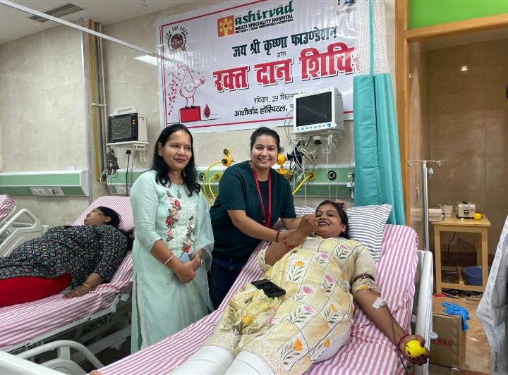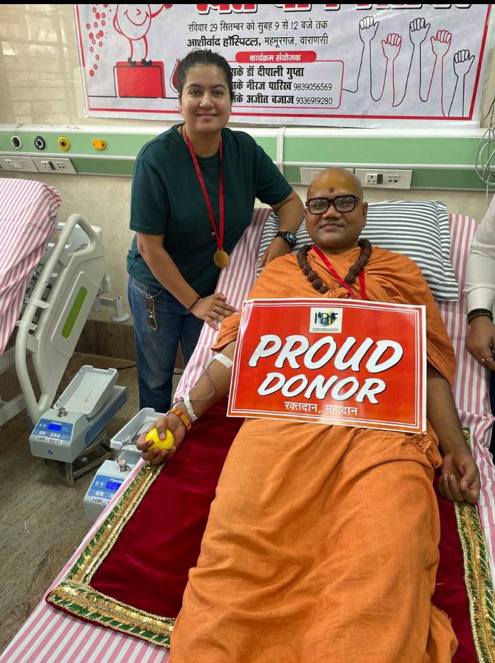 आज 29 सितंबर को महमूरगंज स्थित आशीर्वाद मल्टी स्पेशलिटी हॉस्पिटल और जय श्री कृष्णा फाउंडेशन के संयुक्त तत्वावधान में एक मेगा रक्तदान शिविर का आयोजन हुआ। इस शिविर में कुल 101 यूनिट रक्तदान हुआ, जो शिविर की बड़ी सफलता रही। उद्घाटन समारोह के मुख्य अतिथि श्री 1008 महामंडलेश्रर स्वामी आशुतोषानंद गिरि जी महाराज रहे, वहीं विशिष्ट अतिथि के रूप में MSME के सहायक निदेशक श्री वीरेंद्र राणा और सेलिब्रिटी गेस्ट डॉ. रतिशंकर त्रिपाठी उपस्थित थे।