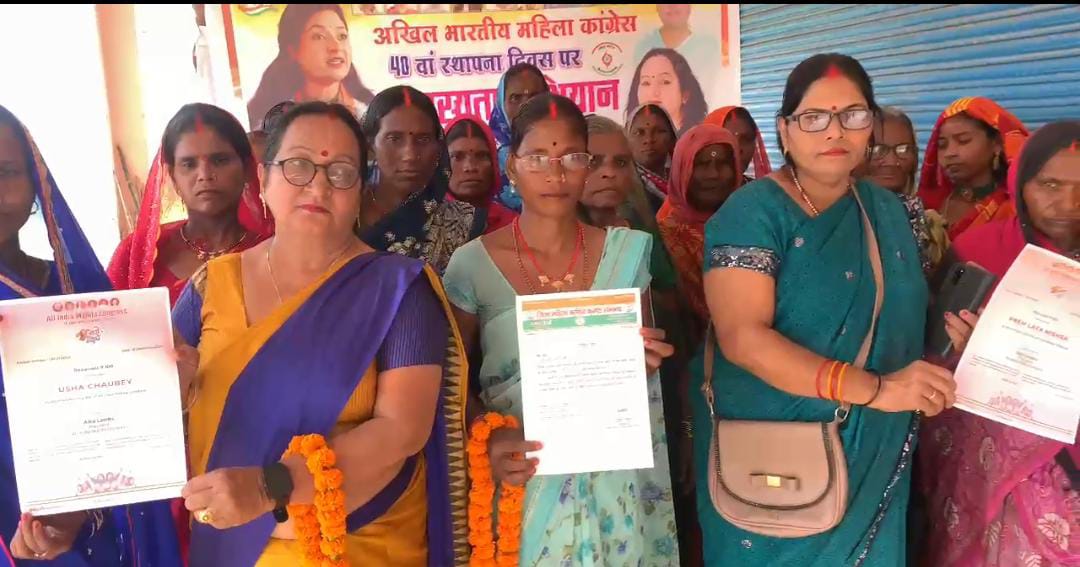 सोनभद्र जिले में इन दिनों महिला कांग्रेस का सदस्यता अभियान जोरो शोरों से चल रहा है जिले के तमाम तहसीलों , ब्लाकों कस्बो व गांवों में महिला कांग्रेस जिलाध्यक्ष ऊषा चौबे के नेतृत्व में लगातार अभियान चलाकर महिलाओं को कांग्रेस की सदस्यता दिला रही है । ऐसे में आज कोन ब्लाक में महिला कांग्रेस का सदस्यता अभियान चलाया गया । जिले के सभी ब्लाकों में महिला कांग्रेस का सदस्यता अभियान चलाया जा रहा है।