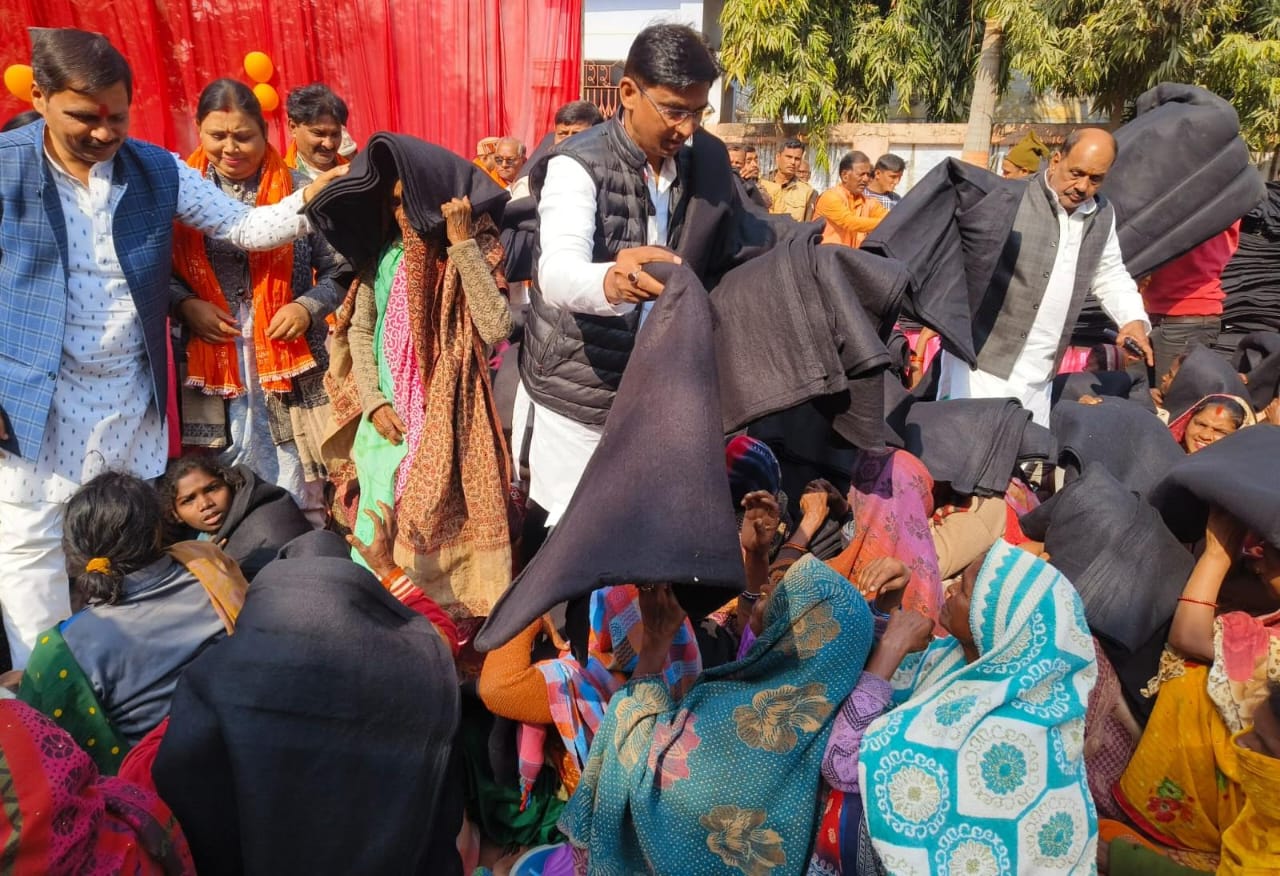 सोनभद्र: चोपन में नर सेवा नारायण सेवा द्वारा मानव सेवा की मिसाल पेश करते हुए प्रत्येक शनिवार को निःशुल्क खिचड़ी वितरण किया जाता है। इसी क्रम में 61वें शनिवार को अपने चिन्हित स्थान पत्रकार संघ कार्यालय पर सर्वप्रथम हनुमान जी को भोग लगाकर प्रसाद वितरण किया गया साथ ही आर्य समाज स्कूल, चोपन में बढ़ती ठंड को देखते हुए पिछले वर्ष की भांति इस वर्ष भी बृहद पैमाने पर लगभग दो हजार गरीबों को कंबल वितरित किए गए।