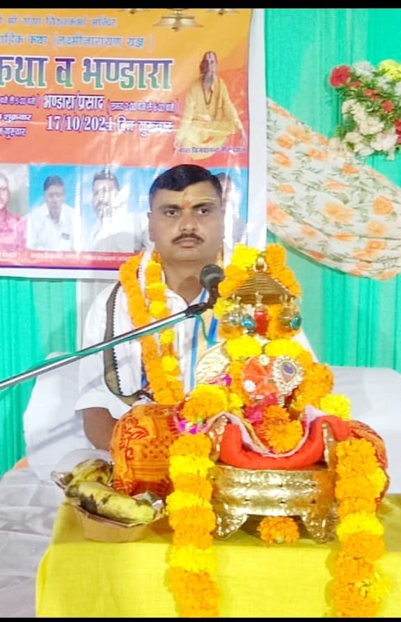 पश्चिम वाहिनी मां गंगा विश्वकर्मा मंदिर पर चल रहे भागवत कथा (लक्ष्मीनारायण यज्ञ) के चतुर्थ दिवस मे पं० करुणाकर उपाध्याय