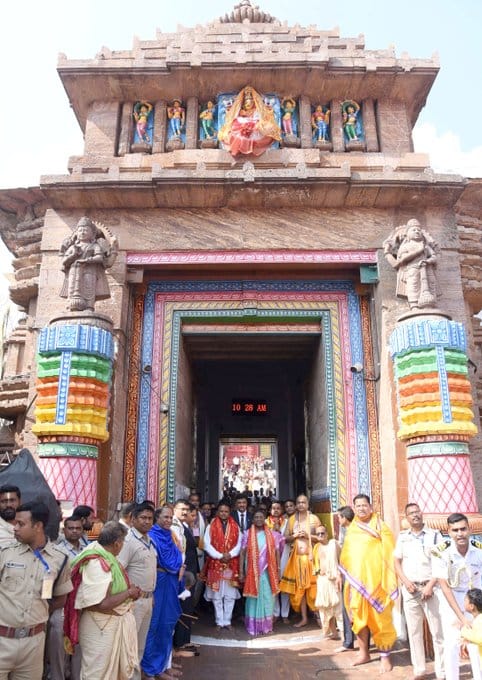 उन्होंने मंदिर के अंदर भगवान जगन्नाथ, भगवान बलभद्र और देवी सुभद्रा की पूजा-अर्चना की। इस दौरान ओडिशा के मुख्यमंत्री और अन्य गणमान्य व्यक्ति भी मौजूद रहे