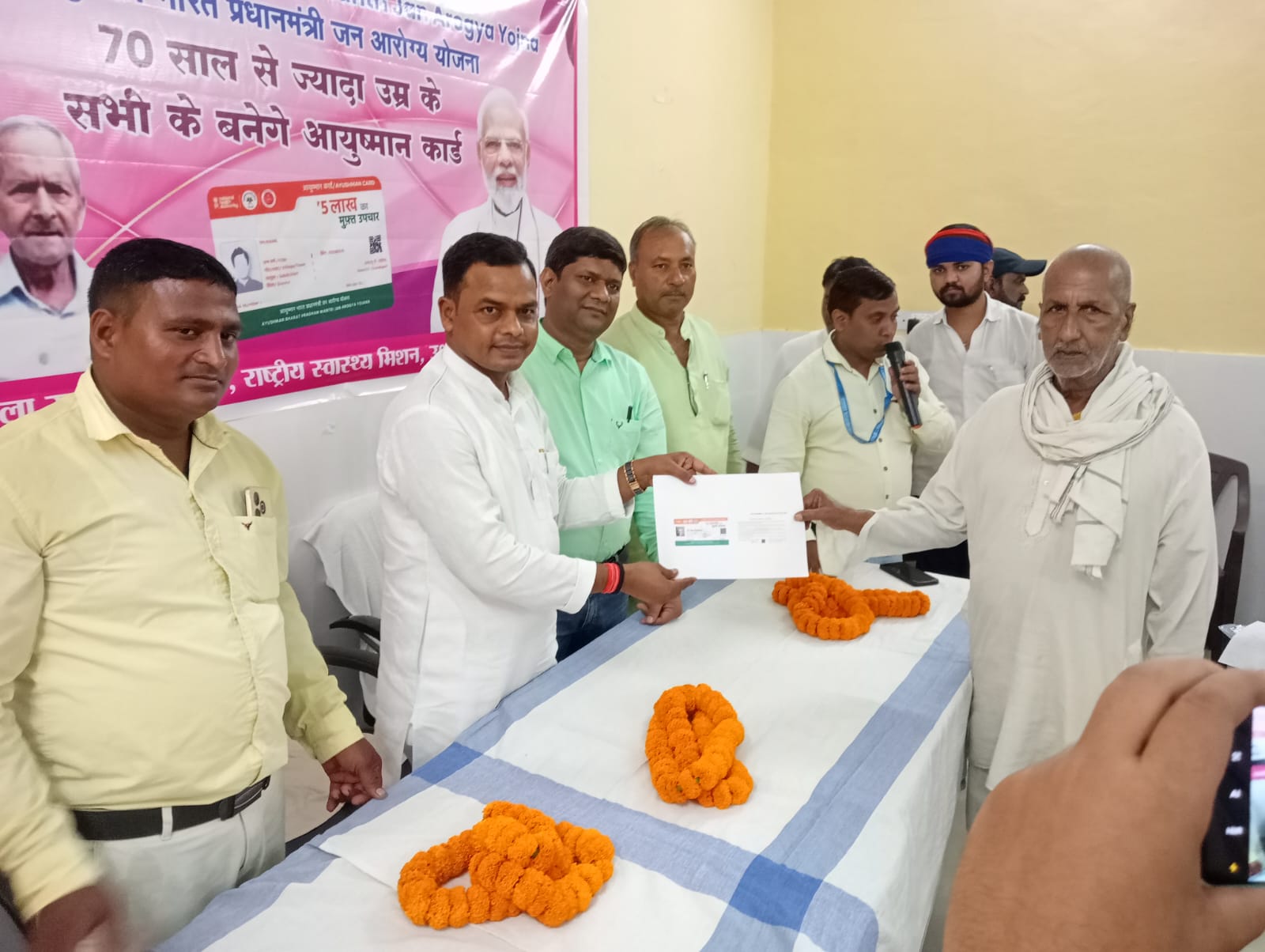 रोहनिया।सामुदायिक स्वास्थ्य केंद्र मिसिरपुर काशी विद्यापीठ वाराणसी पर आयुष्मान भारत प्रधानमंत्री जन आरोग्य योजना के तहत 70 साल से ऊपर के वरिष्ठ नागरिकों का आयुष्मान कार्ड बनाकर माननीय विधायक डॉक्टर सुनील पटेल विधानसभा क्षेत्र रोहनिया द्वारा 20 लोगों को आयुष्मान कार्ड का वितरण किया गया जिसमें घासीराम प्रजापति, नान्हू ,रामचंद्र पाल ,जयराम प्रजापति ,रामबली सिंह ,सुदामा देवी ,लक्ष्मीना देवी और लालचंद राजभर आदि लोगों को आयुष्मान कार्ड का वितरण किया गया। चिकित्सा अधीक्षक डॉक्टर रामबली सिंह द्वारा लोगों को बताया गया की 70 साल से ऊपर के जितने भी बुजुर्ग हैं सबका आयुष्मान कार्ड उनके गांव में ही पंचायत सहायक द्वारा आशा के सहयोग से बनाया जाएगा ।आयुष्मान मित्र प्रवीण कुमार द्वारा आए हुए लाभार्थियों का आयुष्मान कार्ड बनाया गया तथा जिनका आज नहीं बना उन्हें आश्वासन दिया गया कि आप लोगों का कार्ड जब भी आएंगे यहां बन जाएगा एवं तत्काल प्रिंट होकर मिल भी जाएगा। कार्यक्रम का संचालन स्वास्थ्य शिक्षा अधिकारी द्वारा किया गया।