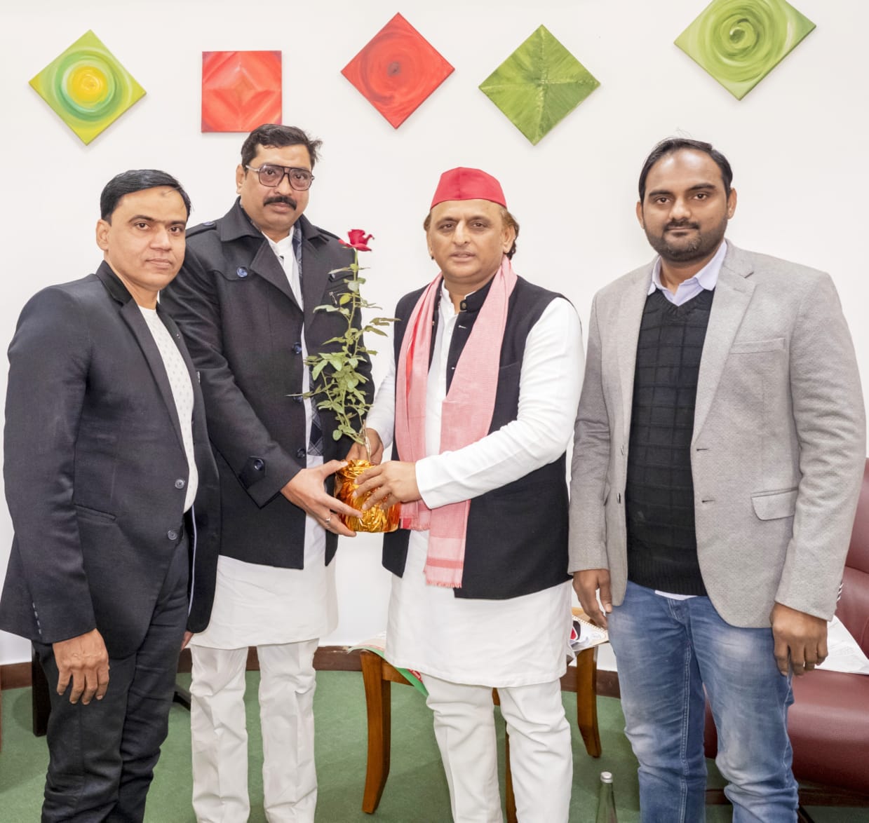 राष्ट्रीय युवा दिवस पर समाजवादी पार्टी के राष्ट्रीय अध्यक्ष अखिलेश यादव को भेंट किया गया गुलाब का पौधा