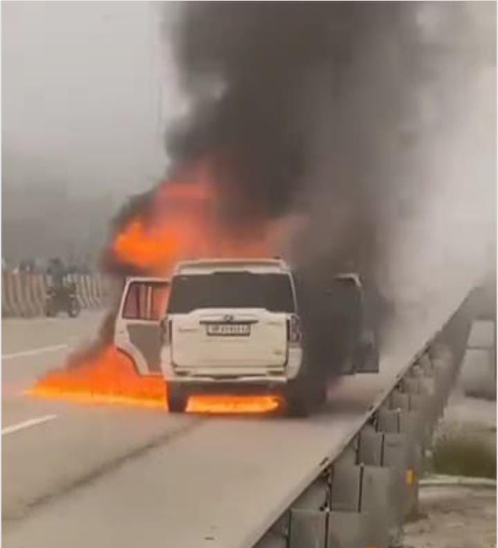 अचानक आग का गोला बन गई सड़क पर दौड़ रही स्कार्पियो, मुगलसराय से विंध्याचल दर्शन करने जा रहा था परिवार