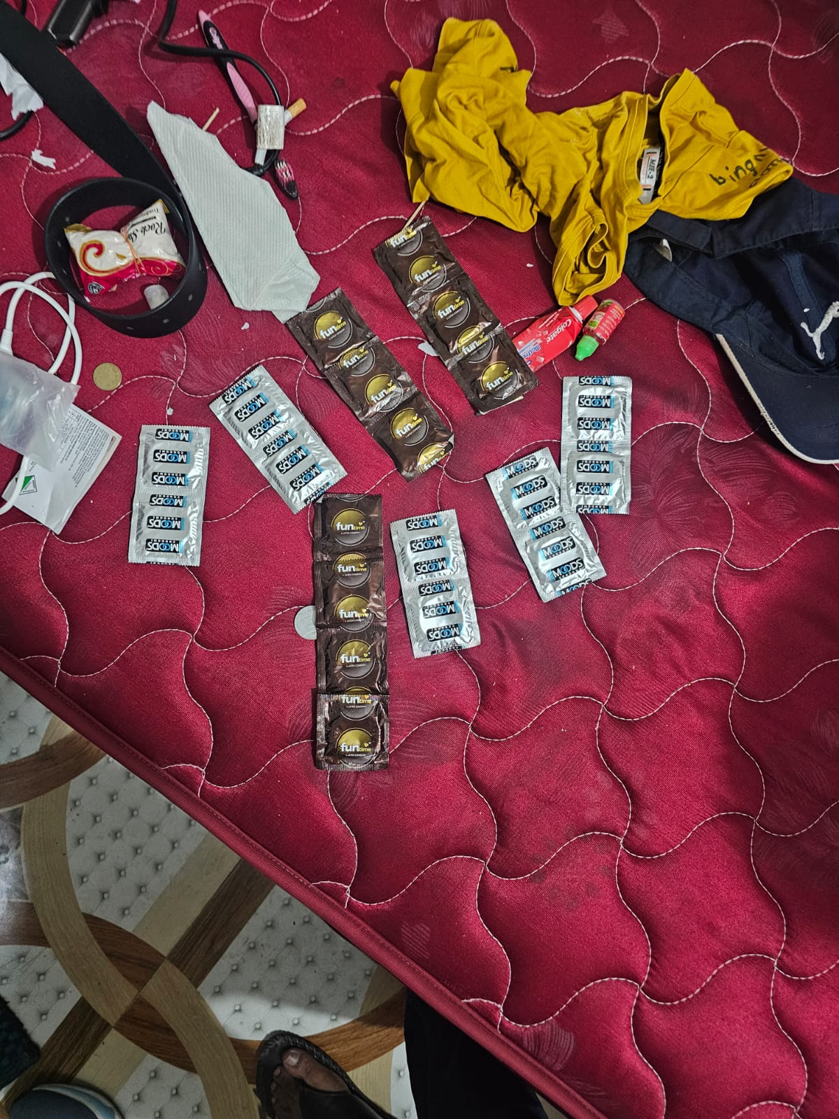 कार्रवाई के दौरान पुलिस ने मौके से 4 युवकों और 2 युवतियों को आपत्तिजनक स्थिति में पकड़ा। तलाशी के दौरान कमरे से बड़ी संख्या में कंडोम और शक्तिवर्धक दवाएं भी बरामद हुईं। पुलिस सभी आरोपितों को हिरासत में लेकर पूछताछ कर रही है और पूरे नेटवर्क की जांच में जुट गई है।