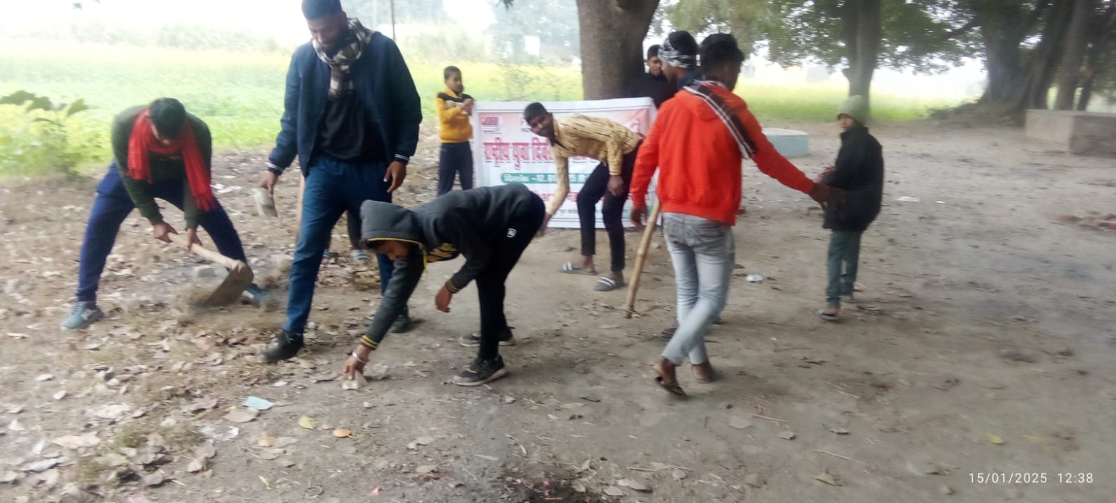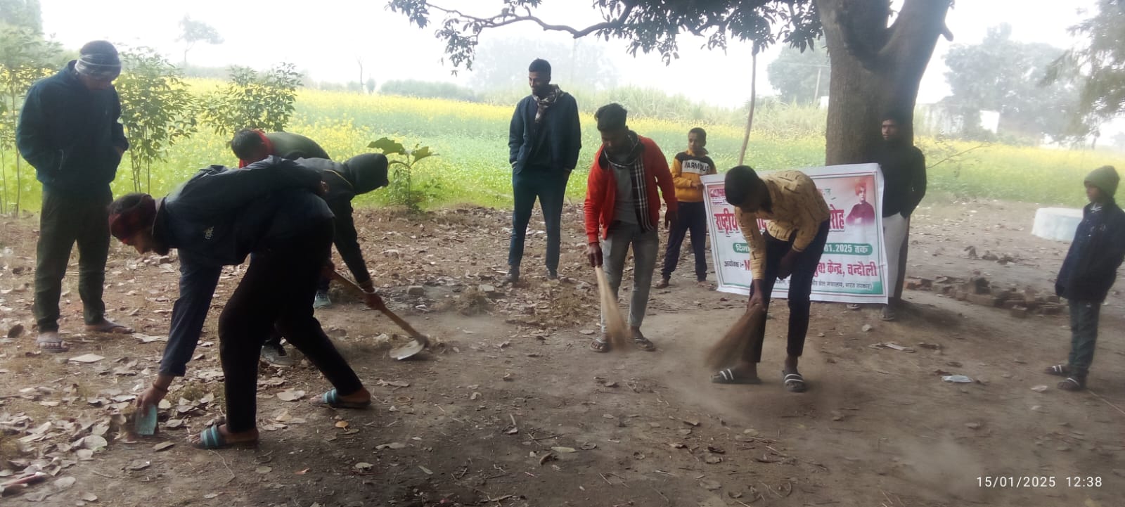आज 15 जनवरी 2025 को नेहरू युवा केंद्र चंदौली द्वारा राष्ट्रीय युवा सप्ताह कार्यक्रम के तहत युवा मंडल धपरी, ब्लॉक नियामताबाद में श्रमदान स्वच्छता अभियान आयोजित किया गया। इस कार्यक्रम का उद्देश्य युवाओं में स्वच्छता के प्रति जागरूकता फैलाना और समाज में सफाई के महत्व को समझाना था।