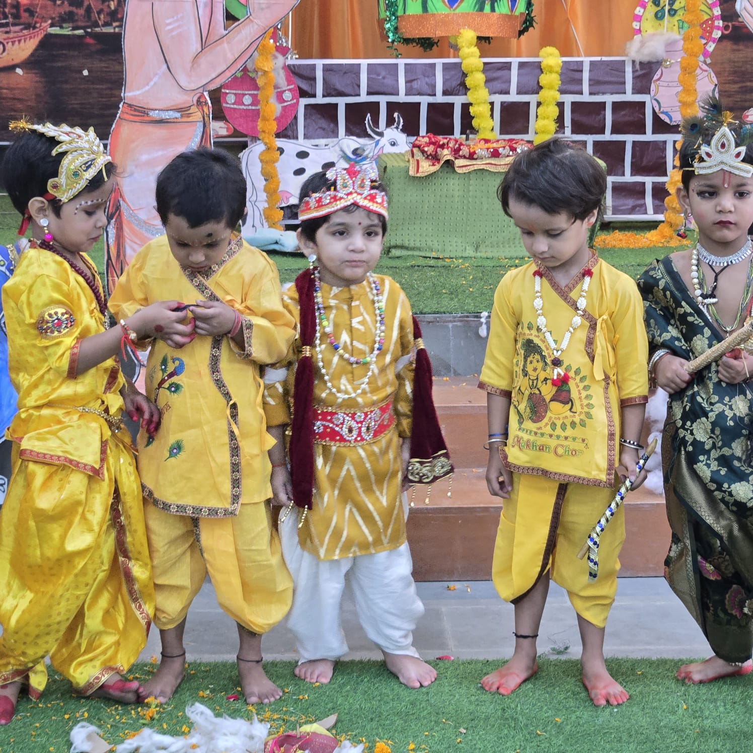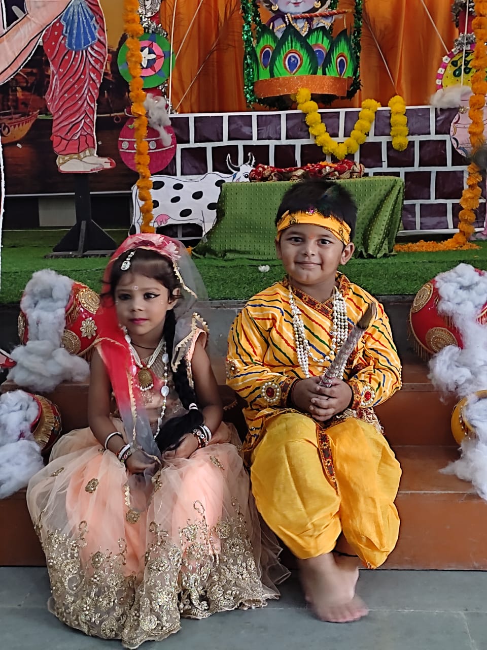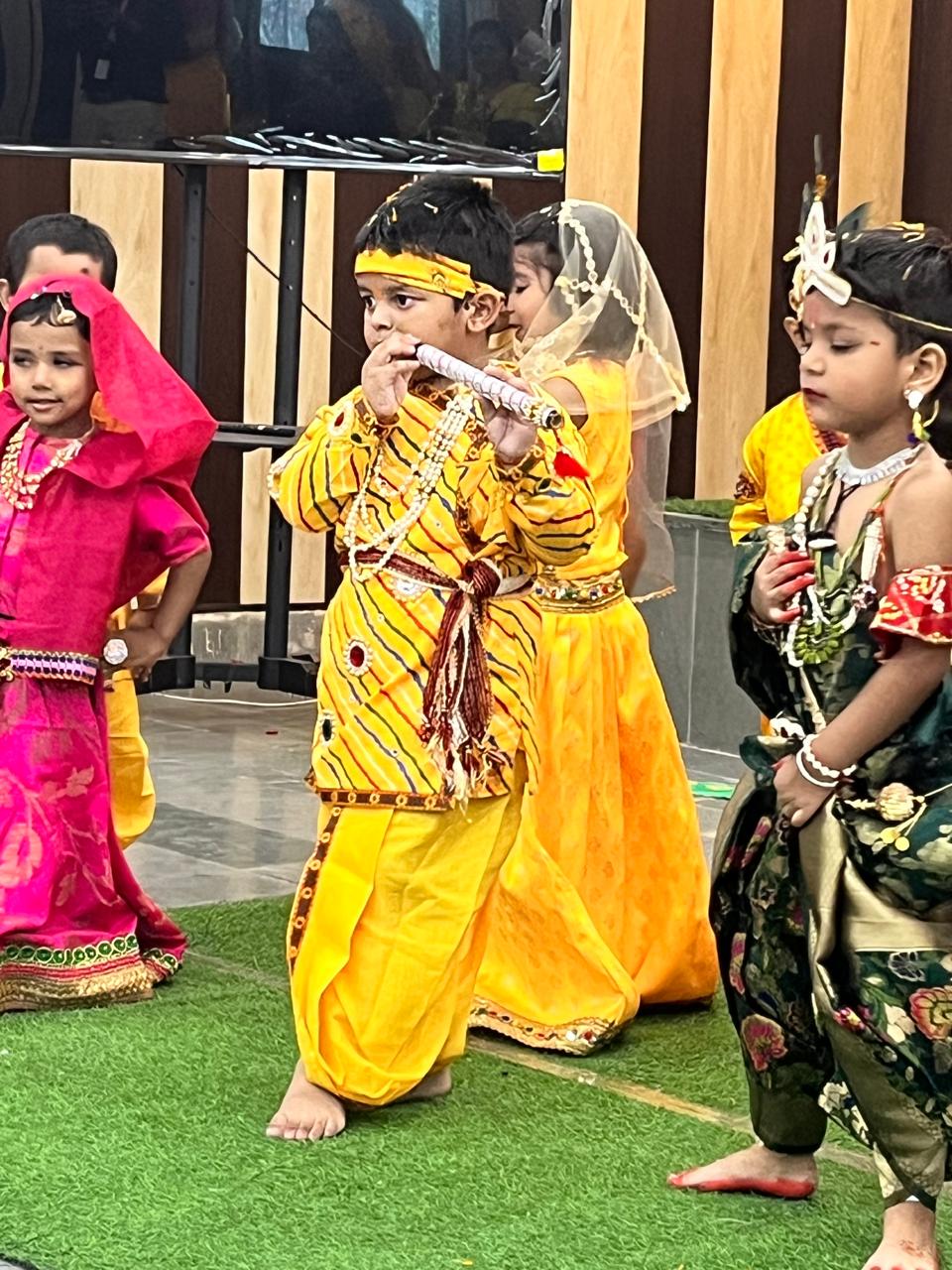 कार्यक्रम की शुरुआत भगवान श्रीकृष्ण और राधा की सुंदर झांकियों से हुई। प्लेग्रुप और नर्सरी कक्षाओं के बच्चों ने राधा-कृष्ण के रूप में सजीव प्रस्तुतियां दीं। इसके साथ ही बच्चों ने एक विशेष नृत्य “राधा तेरी चुनरी” प्रस्तुत किया, जिसने दर्शकों का दिल जीत लिया। बच्चों की मासूमियत और रंग-बिरंगी पोशाकों ने कार्यक्रम में चार चांद लगा दिए।
