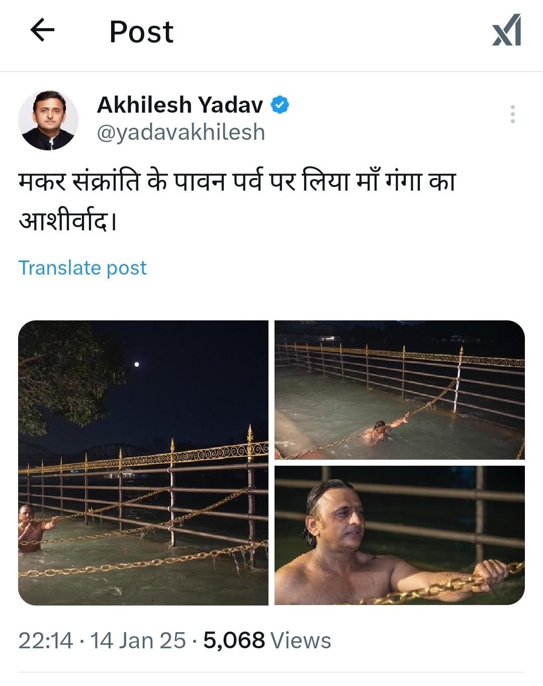 16 January 2025 Editor Desh VideshLucknow सपा अध्यक्ष अखिलेश यादव ने हरिद्वार में मकर संक्रांति पर किया स्नान सपा अध्यक्ष अखिलेश यादव ने X पर फोटो शेयर करते हुए लिखा “मकर संक्रांति के पावन पर्व पर लिया मां गंगा का आशीर्वाद”-अखिलेश यादव खबर को शेयर करे Latest articles अस्सी चौकी क्षेत्र में मामूली टक्कर के बाद दो पक्षों में मारपीट, 5 मिनट तक मचा हंगामा Editor मदरसे में लिफ्ट गिरने से युवक की मौत, एक गंभीर घायल Editor कफ सिरप तस्करी मामले में भतीजे से दूरी, सपा नेता प्रदीप जायसवाल ने दी सफाई Editor