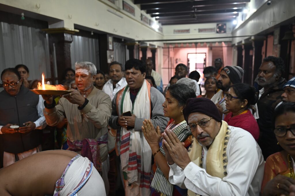 गंगा स्नान के बाद सभी मेहमानों ने घाट पर स्थित प्राचीन मंदिरों में दर्शन-पूजन किया। सभी मेहमानों को मंदिरों के इतिहास दिव्यता और भव्यता के बारे में जानकारी दी गई। इसके उपरांत तमिल मेहमान हनुमान घाट स्थित सुब्रह्मण्य भारती के घर गए। वहां उनके परिवार के सदस्यों से उन्होंने मुलाकात की। सांस्कृतिक दल ने हनुमान घाट के गलियों में भ्रमण किया।