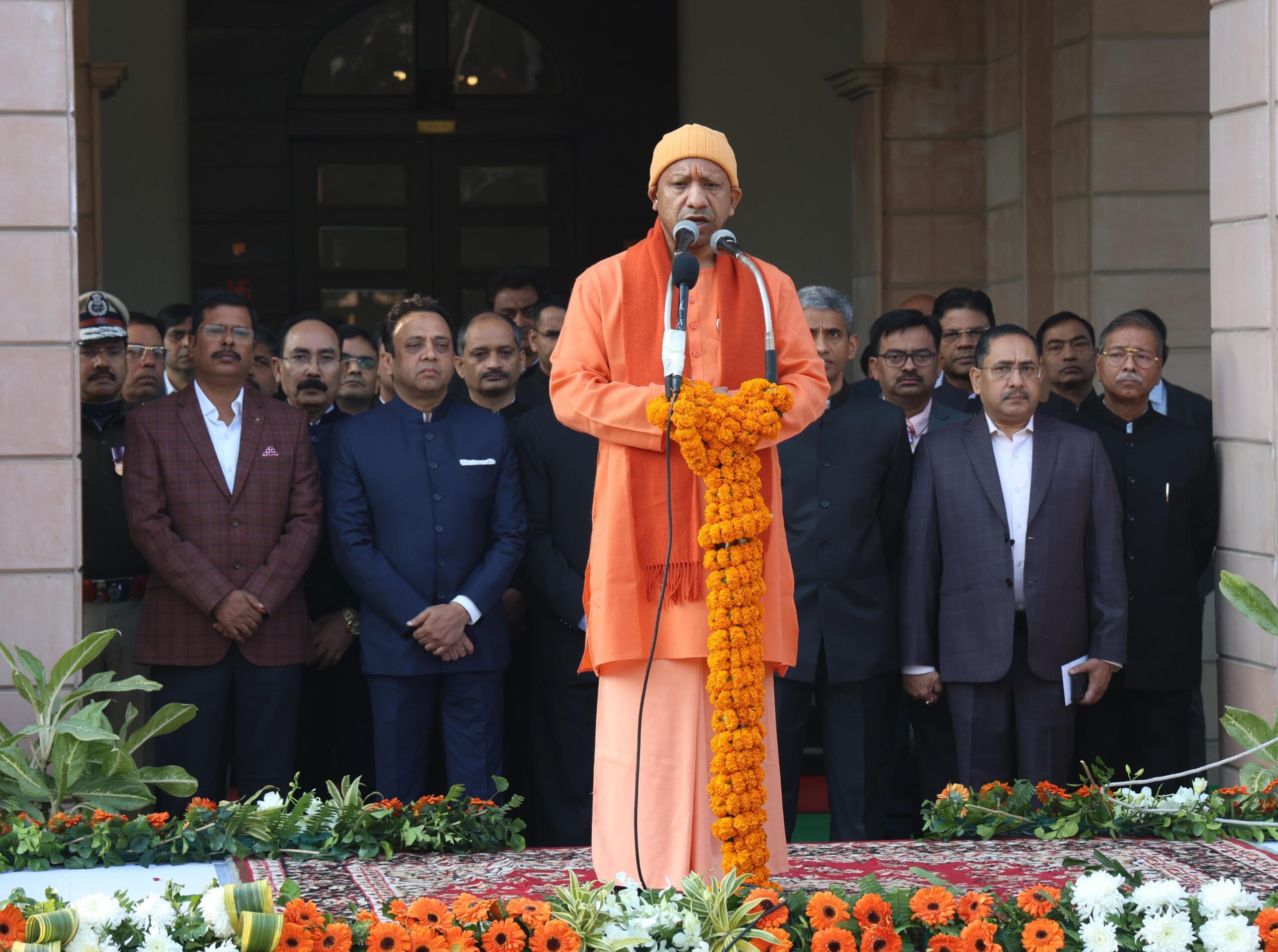 मुख्यमंत्री योगी आदित्यनाथ ने कहा कि भारत का संविधान हमें न्याय, समता और बंधुता के साथ जुड़ने की एक नई प्रेरणा प्रदान करता है। सम और विषम परिस्थितियों में यह पूरे भारत को एकता के सूत्र में बांधने में सफल रहा है। आज के इस अवसर पर जब हम भारत के संविधान के लागू होने के 75 वर्ष को पूरा कर रहे हैं, इस अवसर पर मैं भारत माता के महान सपूतों को स्मरण करते हुए श्रद्धांजलि अर्पित करता हूं।