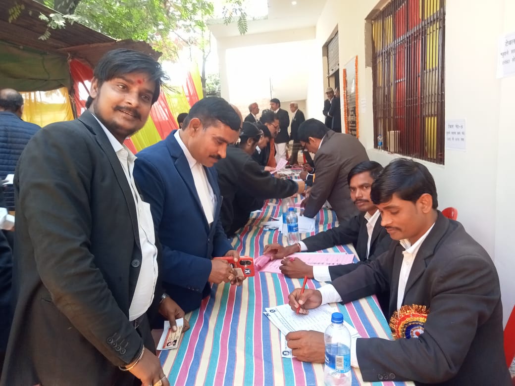 राजातालाब ।दी तहसील बार एसोसिएशन राजातालाब की वार्षिक चुनाव शुक्रवार को सुबह 9:30 बजे से प्रारंभ हुआ जिसमें 2591 मत के सापेक्ष 1591 मत पड़े। अध्यक्ष पद पर चंद्रशेखर उपाध्याय नारायणी सिंह राजेश कुमार सिंह ओम प्रकाश पांडेय व महामंत्री के लिए अनिल कुमार सिंह अमृत प्रताप सिंह संतोष कुमार चौबे सतीश कुमार पांडेय कनिष्ठ उपाध्यक्ष पद पर अमित प्रताप सिंह व संजय कुमार वर्मा कोषाध्यक्ष अशोक कुमार वर्मा व धर्मेंद्र कुमार विश्वकर्मा संयुक्त सचिव प्रशासन पर हंस पटेल व राजकुमार यादव व सिद्धार्थ कुमार राय के माध्य मुकाबला है।शाम तक चले चुनाव में मतदान शांतिपूर्ण सम्पन्न हुआ।पर्यवेक्षक के रूप में सेंट्रल बार एसोसिएशन के पूर्व अध्यक्ष गण राधे मोहन त्रिपाठी एडवोकेट सुरेश लाल श्रीवास्तव व शिवपूजन सिंह गौतम थे।बनारस बार के अध्यक्ष मोहन यादव,अधिवक्ता रुद्र कुमार पाठक व विंध्याचल चौबे ने भी पर्यवेक्षक की भूमिका निभाई। चुनाव संचालन समिति के सदस्य गण दिनेश कुमार शर्मा धीरेंद्र प्रताप सिंह रामजी सिंह पटेल विजय कुमारभारती मनोज कुमार मिश्रा रहे।विशेष सहयोगी के रूप में विश्वजीत श्रीवास्तव बालकरण यादव रहे।