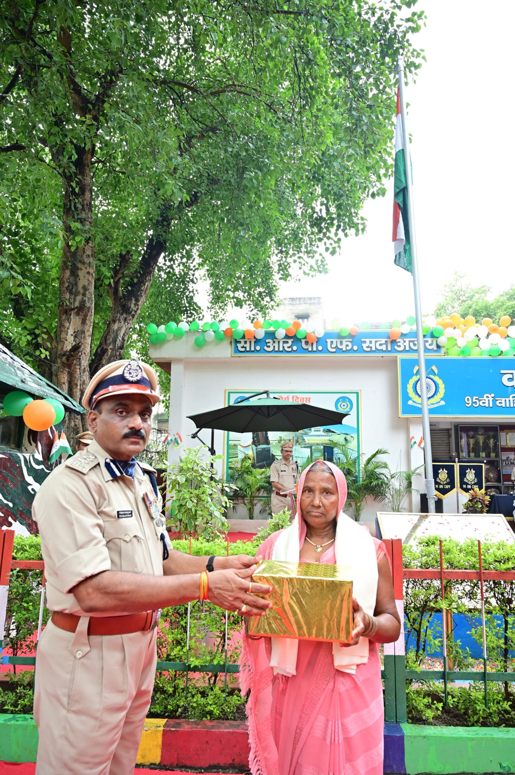 बतादें कि वाराणसी में स्वतंत्रता दिवस के शुभ अवसर पर केंद्रीय रिजर्व पुलिस बल की ओर से 78वें स्वतंत्रता दिवस को मनाया गया। जिसमें झंडारोहण के बाद अमर शहीदों को याद किया गया। राजेश्वर बालापुरकर कमाण्डेन्ट ने प्रातः 0830 बजे क्वार्टर गार्ड पर सेरिमोनियल गार्ड का निरीक्षण किया,झंडारोहण कर उपस्थित अधिकारियों एवं जवानों को आजादी के गौरवशाली इतिहास से परिचय कराया तथा शहीदों को याद किया साथ साथ में शहीदों के परिवारों को कार्यक्रम में बुलाकर सम्मानित किया गया।