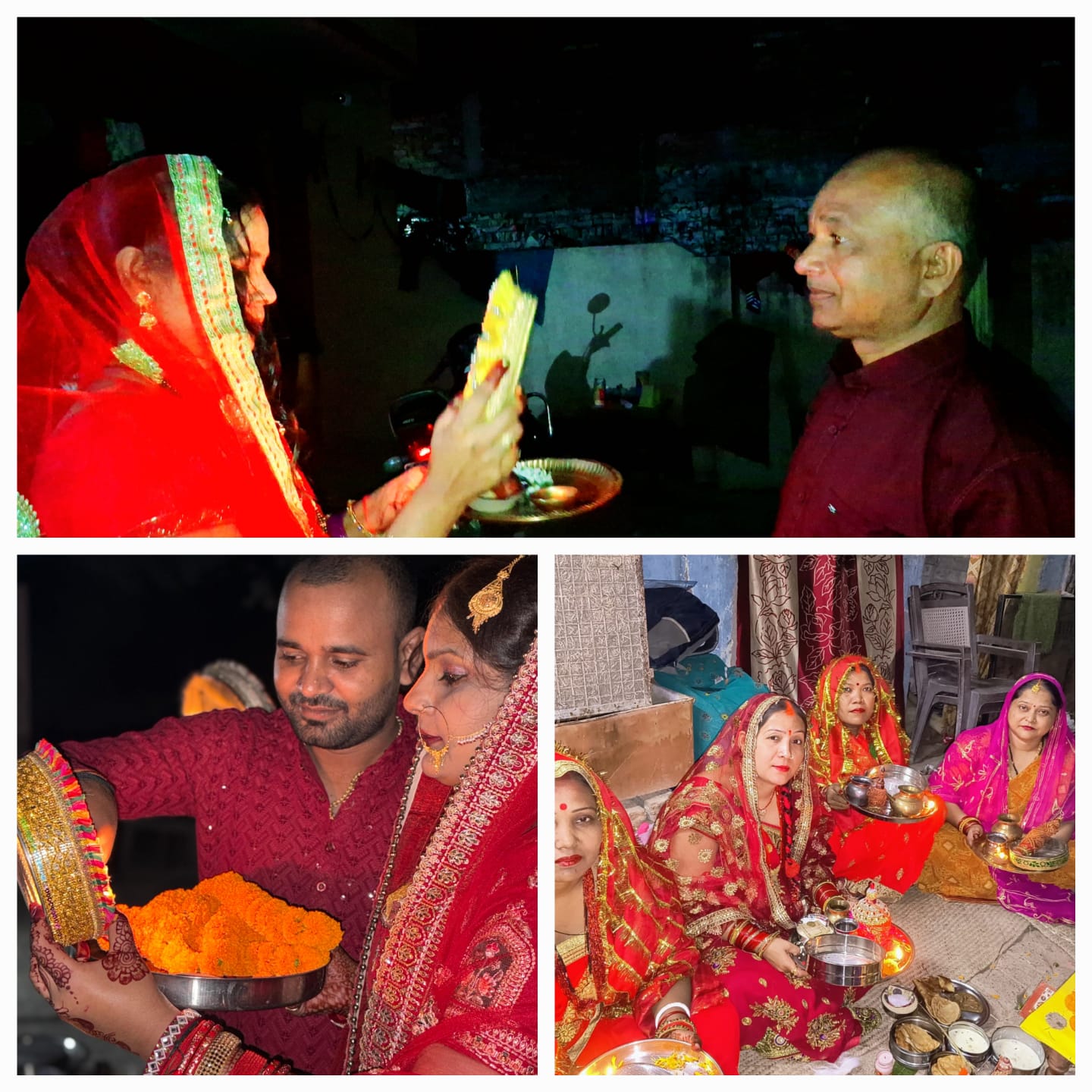 सुबह से ही महिलाओं ने करवा चौथ की तैयारियां शुरू कर दी थीं। सोलह श्रृंगार किए हुए महिलाएं, हाथों में मेहंदी लगाए, मंदिरों और घरों में पूजा की तैयारी करती नजर आईं। जैसे ही चंद्रमा उदय हुआ, महिलाओं ने चलनी में से चांद को देखकर पूजा की और फिर अपने पति के हाथों से जल ग्रहण कर व्रत संपन्न किया।
