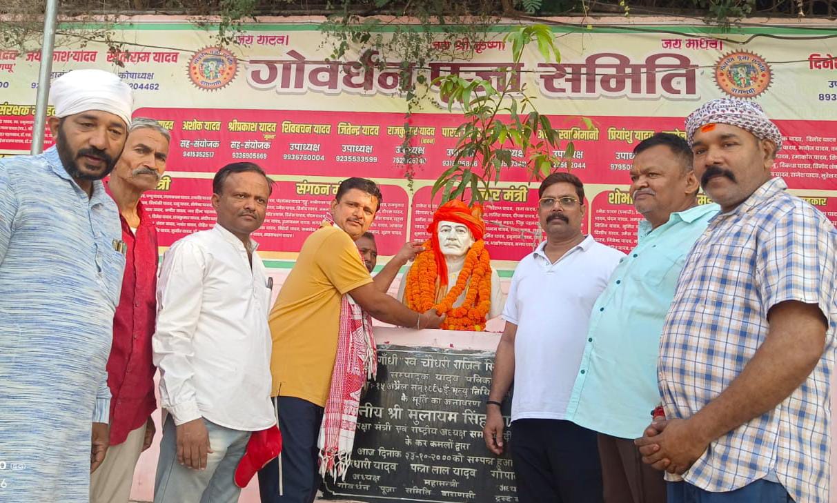 वाराणसी।गोवर्धन धारी जी के श्रृंगार आरती के पश्चात गोवर्धन धाम पर बुधवार को सुबह विगत वर्षों की भांति इस वर्ष भी गोवर्धन पूजा समिति के अध्यक्ष विनोद यादव गप्पू की अध्यक्षता में यादव समाज के लोगों ने ‘यादव गांधी’ स्व चौधरी राजित सिंह यादव जी के जयंती पर उनके प्रतिमा पर माल्यार्पण कर बड़े ही हर्षोल्लास के साथ यादव दिवस मनाया। एवं धाम पर उपस्थित सभी लोगों को यादव दिवस पर मिठाई भी खिलाया गया कार्यक्रम के दौरान दिनेश यादव पप्पू, भोला यादव, जयप्रकाश यादव, राजेश अहिर ,अशोक यादव ढुल्ली, विजय यादव, लाल बच्चन, मनोज यादव, राजा यादव ,श्री प्रकाश यादव, राजेश यादव, प्रदीप यादव, अभय स्वाभिमानी ,विनोद यादव, कमलेश ,पारस यादव पप्पू, सतीश यादव आदि सभी लोगों ने ‘यादव गांधी’स्व चौधरी राजित सिंह यादव जी के प्रतिमा पर माल्यार्पण कर उनके व्यक्तित्व व कृतित्व के बारे में विस्तार पूर्वक वर्णन करते हुए यादव दिवस की हार्दिक शुभकामनाएं दी।किशोरी किशोर दास ट्रस्ट बोर्ड द्वारा गोवर्धन पूजा समिति के सभी पदाधिकारियों का भूरी-भूरी प्रशंसा किया उनके द्वारा किए जा रहे कार्यों का भी खुले मन से खुब सराहना किया।कार्यक्रम का संचालन पारस यादव पप्पू तथा धन्यवाद ज्ञापन किशोरी किशोर दास यादव ने किया।इस अवसर पर गोवर्धन धाम पर काफी संख्या में श्रद्धालु एवं पूजा समिति के पदाधिकारी गण उपस्थित रहे।